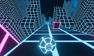 Environment: The terrain is constantly changing with slopes, gaps, and neon obstacles that require players to concentrate highly.